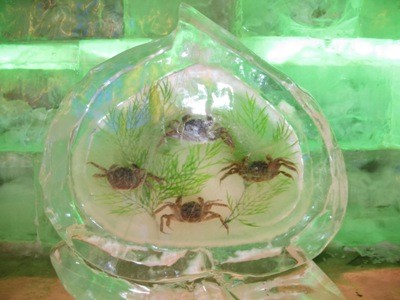 Cá và cua bị đông cứng trong các tác phẩm băng |