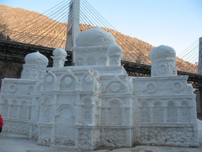 Qua bàn tay khéo léo của các nghệ nhân, trên khu triển lãm rộng 100.000 m, những khối tuyết được khắc thành muôn hình vạn dạng. Hai bên đường vào thung lũng là các tượng tuyết hình em bé, hình ông Thọ, hình người phụ nữ…Tôi phải trầm trồ trước sự sinh động trên từng đường nét của những bức tượng. Đặc biệt hơn cả là những ngôi nhà với những khung cửa sổ con con và cả một ngôi đền thờ theo phong cách Hồi giáo cũng được làm từ tuyết…