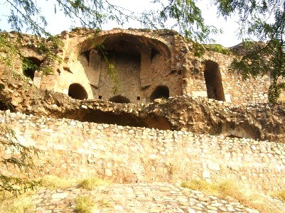 Cả bọn đã quy định giờ tập trung để đi Purana Qila, nhưng phải dời đi dời lại mấy lần mới dứt ra được cái viện bảo tàng hấp dẫn này để kéo nhau lần mò theo bức tường thành rêu phong đi sang Purana Qila. Đi theo con đường hoang ven bờ thành này mát mẻ và thích hơn đi ngoài đường lộ chính nhiều nhưng cuối đường là phải leo qua hàng rào nhọn hoắt mới đến được cổng vào Purana Qila.
