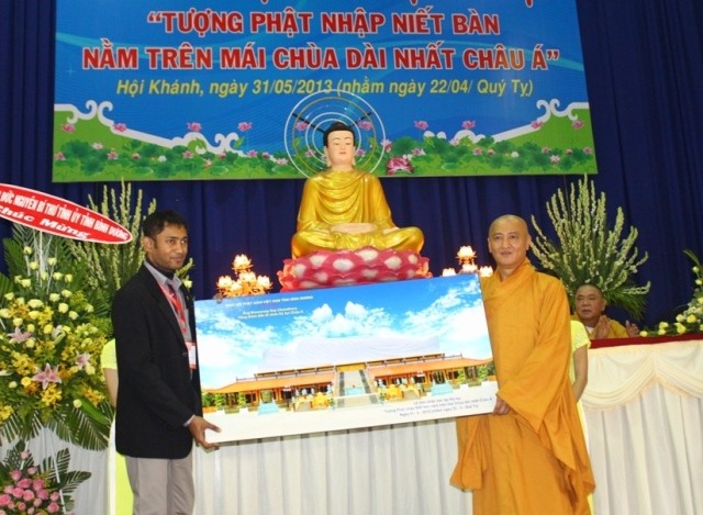 TT.Thích Huệ Thông tặng ảnh tôn tượng Đức Phật nhập Niết-bàn chùa Hội Khánh