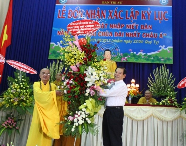 Tham dự buổi lễ đón nhận kỷ lục có ông Nguyễn Minh Triết, nguyên Chủ tịch nước CHXHCNVN; Phạm Văn Cành, Ủy viên Ban Thường vụ Tỉnh ủy, Chủ tịch UBMTTQVN tỉnh; Nguyễn Thanh Liêm, Trưởng ban Dân vận tỉnh; Huỳnh Văn Nhị, Phó Chủ tịch UBND tỉnh cùng đại diện các ban ngành, đoàn thể tham dự, về phía Trung tâm Kỷ lục có ông Biswaroop Roy Chowdhury, Tổng Giám đốc Trung tâm Kỷ lục châu Á.