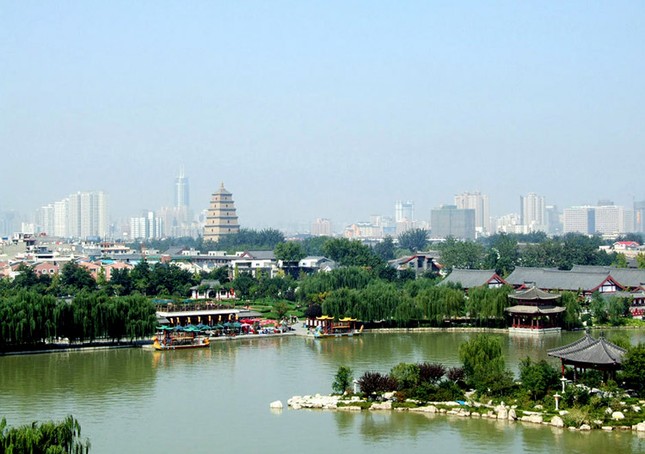 Ngôi chùa nằm giữa những tòa nhà cao tầng ở Tây An.