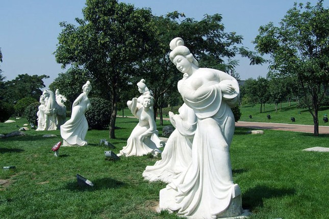 Trong vườn chùa còn có nhiều tượng tiên nữ bằng đá trắng có kích thước lớn hơn người thật.