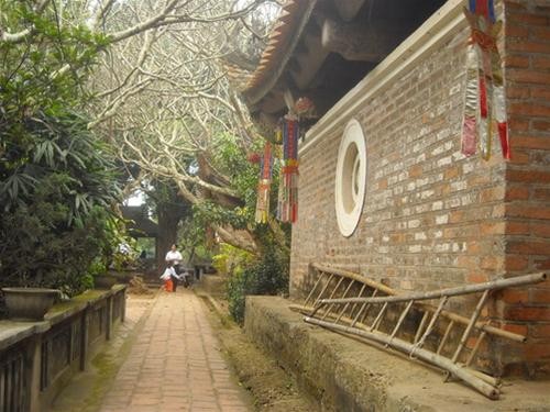Từ chân núi, đi qua 239 bậc lát đá ong, bạn sẽ đặt chân đến cổng chùa. Trước mắt hiện ra ba nếp nhà song song gồm bái dường, chính diện và hậu cung. Xung quang diềm mái của ba toà đều trạm trổ tinh tế theo hình lá triện cuốn. Đầu mái nổi lên hình hoa, lá, rồng phượng được trạm trổ rất tinh tế. Mỗi nếp có hai tầng mái, tường xây hoàn toàn bằng gạch nung đỏ để trần.