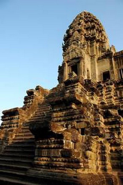Tự dưng, tôi có lối liên tưởng kỳ khôi. Không phải một lần, mà hầu như lần nào cũng vậy, hễ nghe ai đó nói tới các trò chơi “cảm giác mạnh” trong các khu giải trí, bất cứ nơi đâu, tức khắc tôi nhớ ngay tới cảnh leo lên ngọn tháp cao nhất khu đền Angkor Wat ở Campuchia hồi mùa hè năm ngoái. Còn biết bao điều lạ lẫm, hay ho khác về đất bạn thì tôi lại quên lửng, quên ngang xương. Chỉ khi nào đoạn phim leo tháp Angkor Wat trong tôi được nhấn nút thì một thuở chưa xa đó mới hối hả chạy về. Cũng lơ ta mơ lắm!