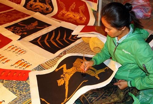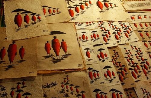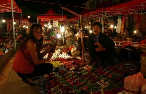Trở lại Luang Prabang lúc chiều đã muộn, phía sau cửa sổ phòng khách sạn, con sông chảy về đất mẹ Việt Nam ánh lên trời chiều màu tím hồng rực rỡ. Từ trên sân cỏ nhìn dòng sông in hình những rặng núi, thấp thoáng đâu đây vài chiếc thuyền con của những người thợ đánh cá đang thả lưới, phong cảnh quá hữu tình cứ hút hồn.Sông Mekong uốn dòng giữa bình yên của làng quê Luang PrabangNhững gian hàng bán tranh giấy dóMột nghệ nhân trẻ tuổi vẽ ngay tại chợChợ đêm tấp nập là nét đáng yêu của thành phố bình yên dành cho du kháchHấp dẫn chợ đêm Sâm sẩm tối là lúc thích hợp vào trung tâm thành phố đi chợ đêm, thú vui của khách du lịch bốn phương. Các gian hàng san sát nhau dưới lòng đường chỉ cho người đi bộ, dưới ánh đèn vàng các sản phẩm như đẹp hơn, long lanh hơn. Các mặt hàng cũng chủ yếu nhắm vào khách du lịch, nào là lụa Lào, xàrông, các loại quần áo sặc sỡ cho đến đồ thủ công mỹ nghệ bằng nhiều chất liệu khác nhau (đá, bạc...). Tôi dừng lại thật lâu ở gian bán tranh được vẽ tương đối cầu kỳ với màu sắc hài hòa trên giấy dó, được vẽ ngay tại chợ cho du khách thưởng thức. Tranh có nhiều loại, to nhỏ khác nhau, motip cũng phong phú, về cuộc sống hằng ngày, tranh dân gian, tranh các nhà sư và các motip về Phật giáo... bày bán la liệt. Khách du lịch lân la hết sạp hàng này đến sạp hàng khác, cái chính là để thưởng thức không khí chợ cũng như quan sát kẻ bán người mua. Đi chợ đêm không thể bỏ qua khu chợ ẩm thực với đủ các món đặc trưng của Lào, phổ biến nhất là món cơm nếp Lào, chỗ nào cũng có thể mua được. Các món ăn của Lào tương đối rẻ và cay. Về đêm trong trung tâm thành phố nhộn nhịp hơn hẳn ban ngày, do sức hấp dẫn của chợ đêm và những hàng quán thơm phức mùi thức ăn. Bạn có thể vừa ăn vừa ngắm khách du lịch qua lại, rất thú vị.Màu vàng của áo cà sa rải khắp các phố, trong sân những ngôi chùaNhững ngôi chùa in dấu