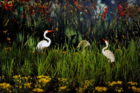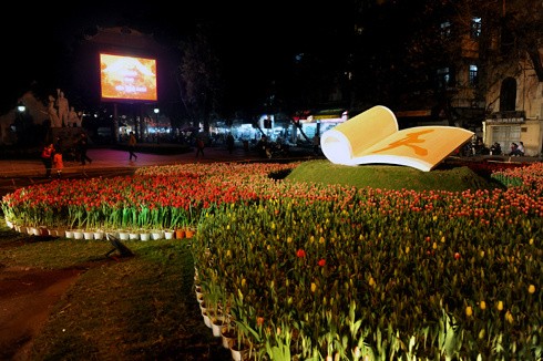 Chiếu dời đô bằng gỗ khảm trai kỷ lục với chiều cao 1,93 m, rộng 1,27 m nặng 79 kg xen giữa muôn ngàn hoa Tulip.