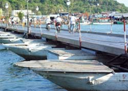 Cầu phao qua làng Đông HồCon đường do tỉnh Kiên Giang mới mở chạy quanh chân núi Đèn có bờ biển xanh thẳm tuyệt đẹp, nối liền đến tận khu du lịch Mũi Nai, là điểm cuối trên đất liền của biên giới Việt Nam - nơi tiếp giáp vùng biển 3 nước Việt Nam – Cam-pu-chia – Thái Lan. Trên đỉnh núi Đèn, vẫn còn đó ngọn hải đăng hơn trăm năm tuổi, vẫn hằng đêm rọi sáng dẫn đường cho các con tàu từ biển đi,về. Từ Mũi Nai ra xa bờ chừng vài trăm mét có rất nhiều đảo nhỏ, đảo lớn của quần đảo Bình Trị và Hải Tặc. Hai quần đảo này cũng là nơi du lịch rất lý tưởng trong tuyến du lịch biển - đảo. Từ ngoài biển nhìn vào mũi đất này giống hệt cái đầu của một chú nai chà nằm nghểnh ra biển. Khi ta tắm xong mệt, đói thì vào quán bình dân trên bãi gọi vài thứ thức ăn biển, thật khó mà chê.