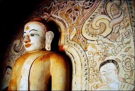 Tôi vẫn nhớ cảm giác hồi hộp khi lần đầu tiên đứng trong hành lang dài và tối của một ngôi đền. Và, khi mắt tôi đã quen dần với bóng tối, những bức tranh vẽ trên tường như cũng dần sáng rõ lên. Không cầu kỳ tinh xảo như tranh tường ở các nhà thờ châu Âu, cũng không phức tạp, khó hiểu như ở Ai Cập, tranh tường ở Bagan có vẻ đẹp dịu dàng và mềm mại như được vẽ trên lụa. Từ trong bóng tối, những khuôn mặt Phật, mặt người phúc hậu và tròn đầy trong tranh như tỏa ra một thứ ánh sáng riêng - ánh sáng của sự bình yên và hy vọng.