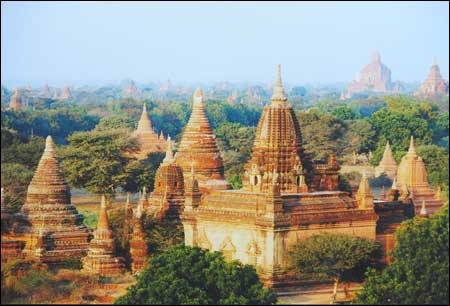 Dân đi du lịch thường có thói quen so sánh những nơi mình đã đi qua, nên mới có những “Paris phương Đông” hay “Venice phương Bắc”. Nhưng, tôi thật không thể hiểu vì sao Bagan lại được so sánh với Angkor của Campuchia. Trong mắt tôi, Bagan và Angkor đối lập với nhau như mặt trời và mặt trăng, như lửa và nước. Ấn tượng về Angkor trong tôi là những ngôi đền đá xanh lạnh lẽo, cô liêu ẩn mình dưới những cánh rừng già trong một ngày mưa. Trong khi đó, Bagan lại là những chùa tháp bằng gạch đỏ hồn nhiên và bình dị, rực rỡ trong nắng vàng và hoa cỏ mùa khô. Vẻ đẹp của Bagan không nhấn vào chi tiết, cũng không nằm ở từng ngôi đền riêng lẻ mà được tạo nên bởi tầng tầng lớp lớp ngọn tháp đủ hình đủ dạng, vừa xa vừa gần, có cao có thấp, như một bức tranh đa chiều kỳ ảo.