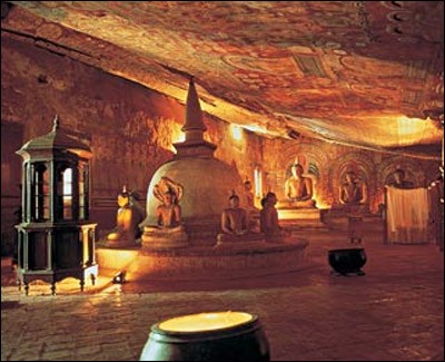 Với hàng trăm tranh và tượng Phật mạ vàng, cao đến 15.24 mét trong đủ các tư thế nằm, đứng, ngồi tại một khu hang động rộng đến 1951 mét vuông, đền thờ Dambulla là nơi kể lại câu chuyện về những kiếp khác nhau của đức Phật. Tượng thờ của thần Ganesh và Vishnu ở đây cũng được người dân đến viếng thường xuyên.