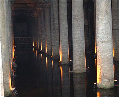 Ở độ sâu 25 mét bên dưới Istanbul có một nơi từng là bể nước dự trữ của hoàng gia, có kích thước 137x65 mét. Bể nước được xây dựng vào thế kỷ thứ tư sau Công nguyên, theo phong cách Byzantine với 336 kiểu cột khác nhau. Từ năm 1453, bể nước hoàn toàn bị quên lãng, và chỉ được người Pháp trong lúc đi tìm cổ vật Byzantine khám phá lại vào năm 1545. Nhưng, nó cũng dần bị bỏ phế cho đến năm 1987 mới được biến thành điểm du lịch. Tại đây có 2 bức tượng đầu Medusa được để theo kiểu một cái ngược và một cái nằm nghiêng bên phải - biểu thị cho lòng tin dành cho những người đã xây dựng bể nước này.