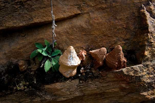 Các vật phẩm cầu may được làm bằng đất sét và đặt tại các hẻm núi, hang đá
