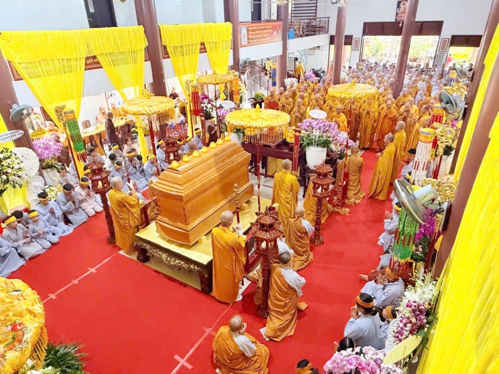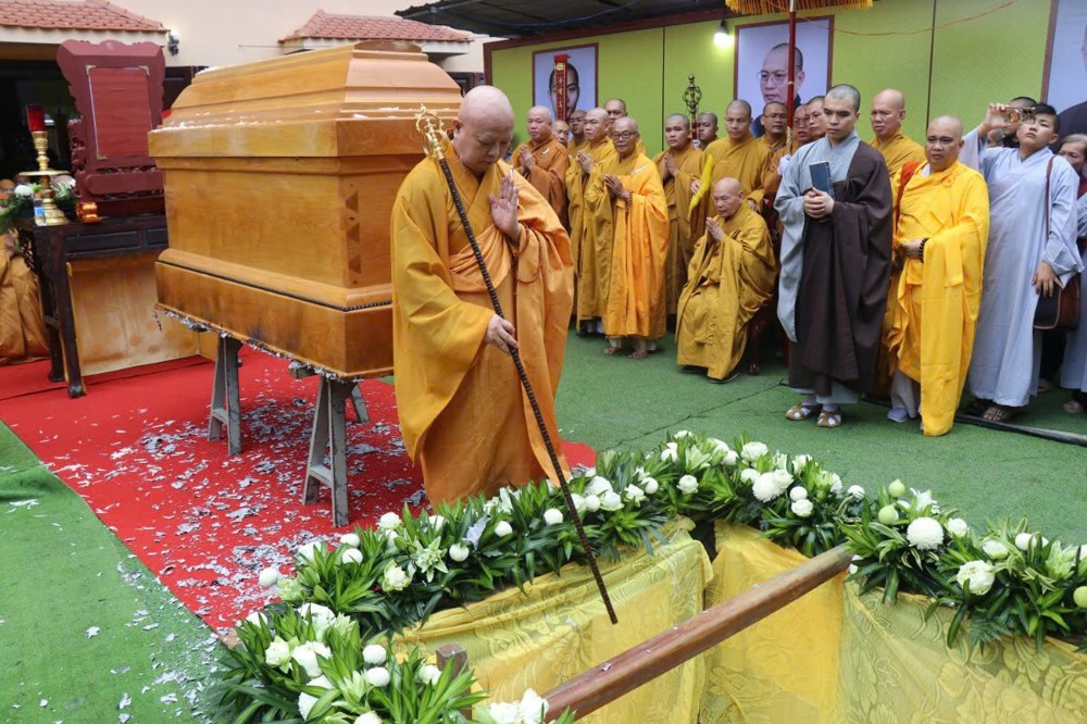 Tiếp nối chương trình, Hòa thượng Thích Lệ Trang – Phó Chủ tịch HĐTS, Trưởng ban Nghi lễ Trung ương, Trưởng ban Trị sự GHPGVN TP.HCM làm sám chủ, chủ trì nghi lễ tuyên pháp ngữ, phất trần trong không khí thanh tịnh, cùng tiếng niệm Phật liên hồi vang vọng của Tăng Ni và Phật tử.